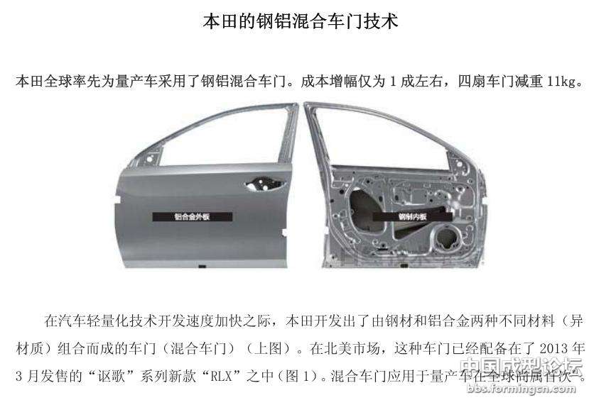 本田的钢铝混合车门技术